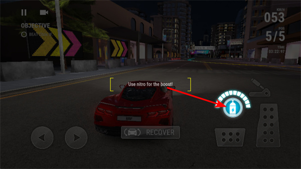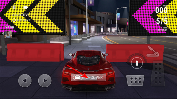 2、遇到障碍时点击RECOVER按钮,这是恢复赛车状态的核心操作,点击后可重置赛车位置,继续参与竞速挑战。