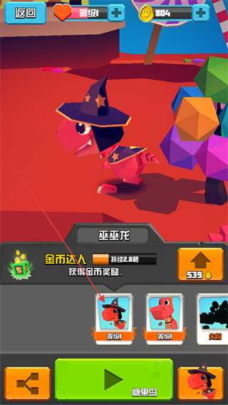 2、选择岛屿中已经获取到的恐龙,可以花费金币进行升级。
