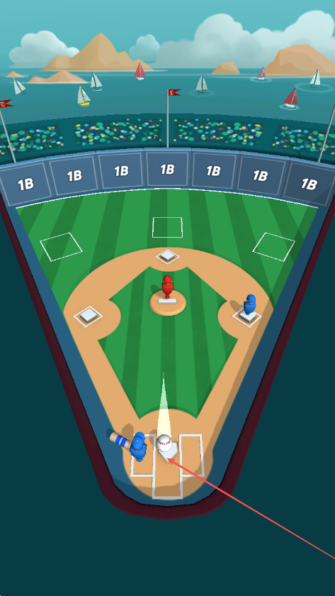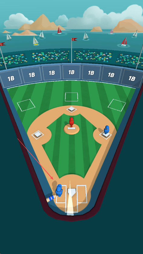 4、尽量让角色依次经过一垒、二垒、三垒,最后回到本垒,完成一次得分。不断重复击球、跑垒过程,获取更高分数。