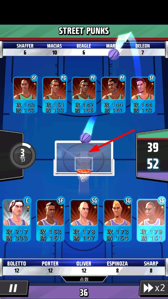 2、在比赛过程中,参与者需要操控球员完成投篮动作,精准投篮可有效得分,积累比赛的优势。