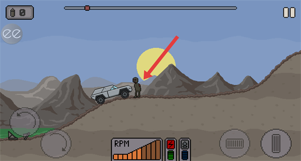 4、行驶时会遇到僵尸等障碍,操控车辆撞击僵尸,持续推进上方游戏进程。