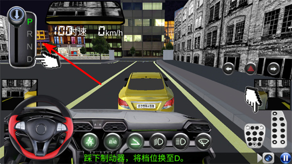 4、在驾驶界面点击档位区域,将档位切换至D档,配合踩下制动踏板,完成起步准备。