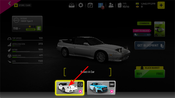 2、选择第一辆赛车,这是开启竞速之旅的核心操作,选择后可获得初始赛车,开始参与各类赛车比赛。
