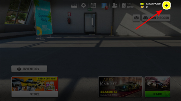 3、点击加号按钮获取资源,这是积累发展素材的关键步骤,点击后可获得金币、钻石等资源,用于赛车升级。