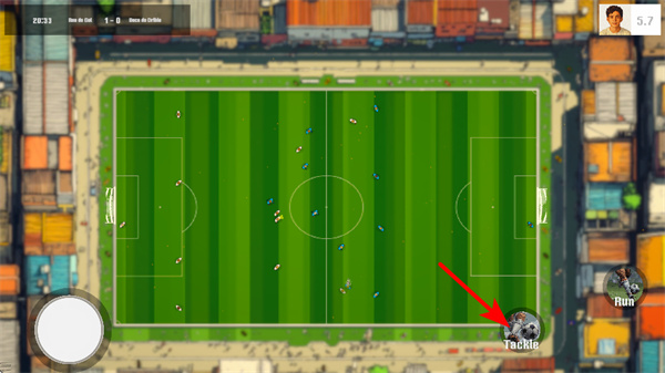 1、游戏中点击Tackle按钮,对对方球员发起抢断,夺回关键操作,把握与对方球员的距离和时机。