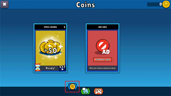 2、可以点击屏幕下方的金币按钮,以进行金币的获取;