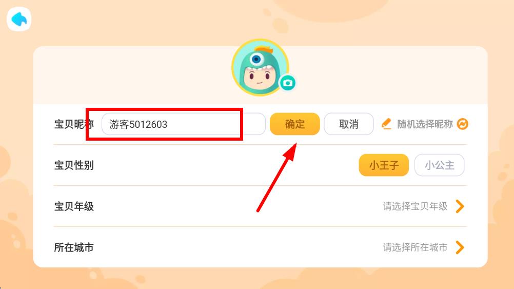 4、在宝贝昵称的输入框中,删除原有的昵称内容,输入想要设置的新名字后,点击确定按钮保存修改。