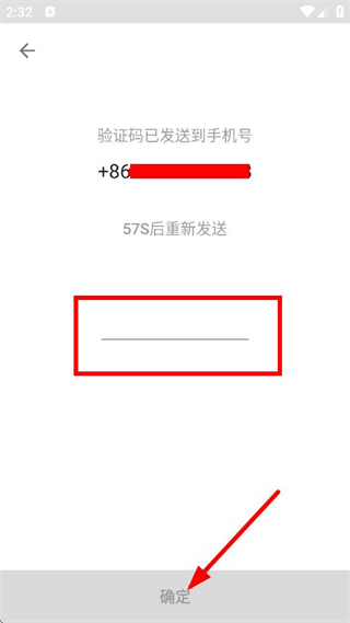 3、在验证码输入页面,输入收到的验证码后点击确定,完成登录操作。