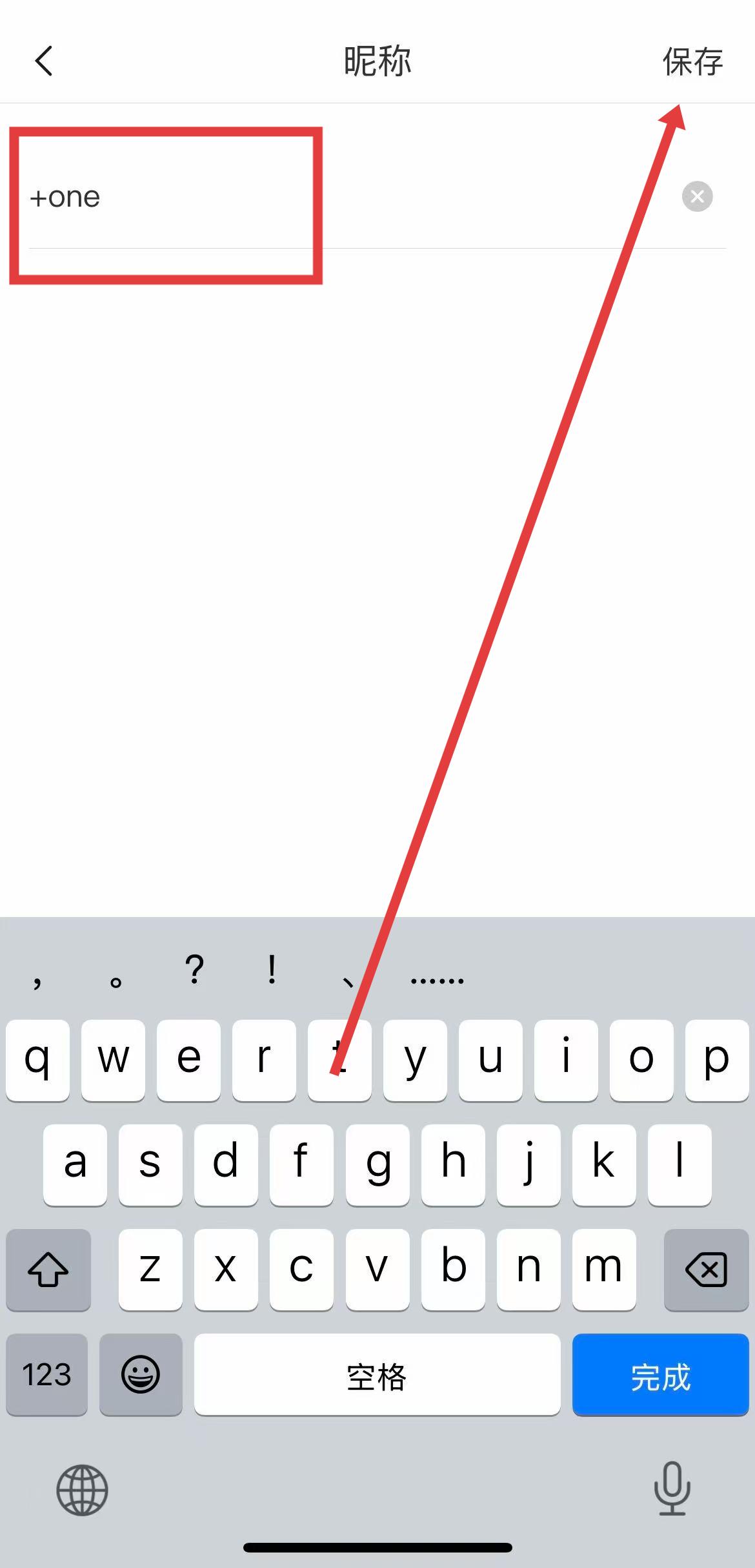 3、在编辑框输入想要修改的昵称,点击右上角保存即可完成修改。