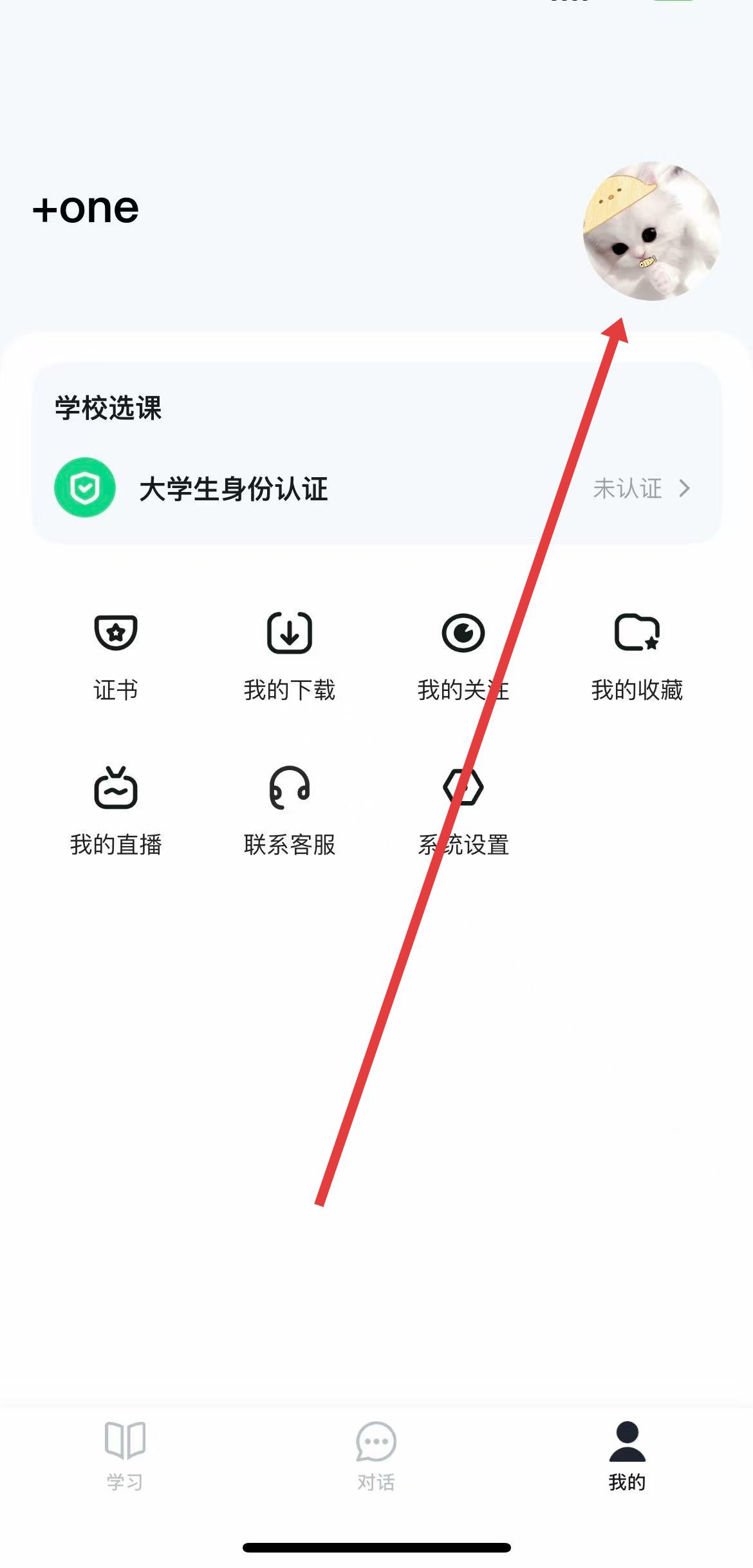 1、打开智慧树app进入我的页面,点击右上角个人头像区域进入个人资料页。