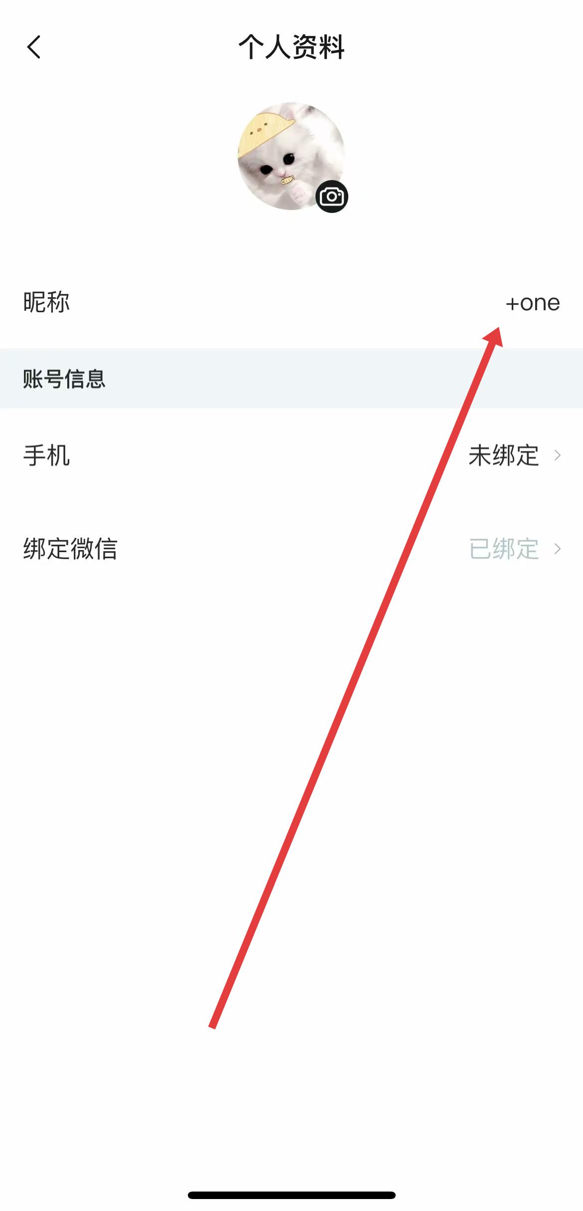 2、在个人资料页面里,点击昵称选项进入昵称编辑界面。