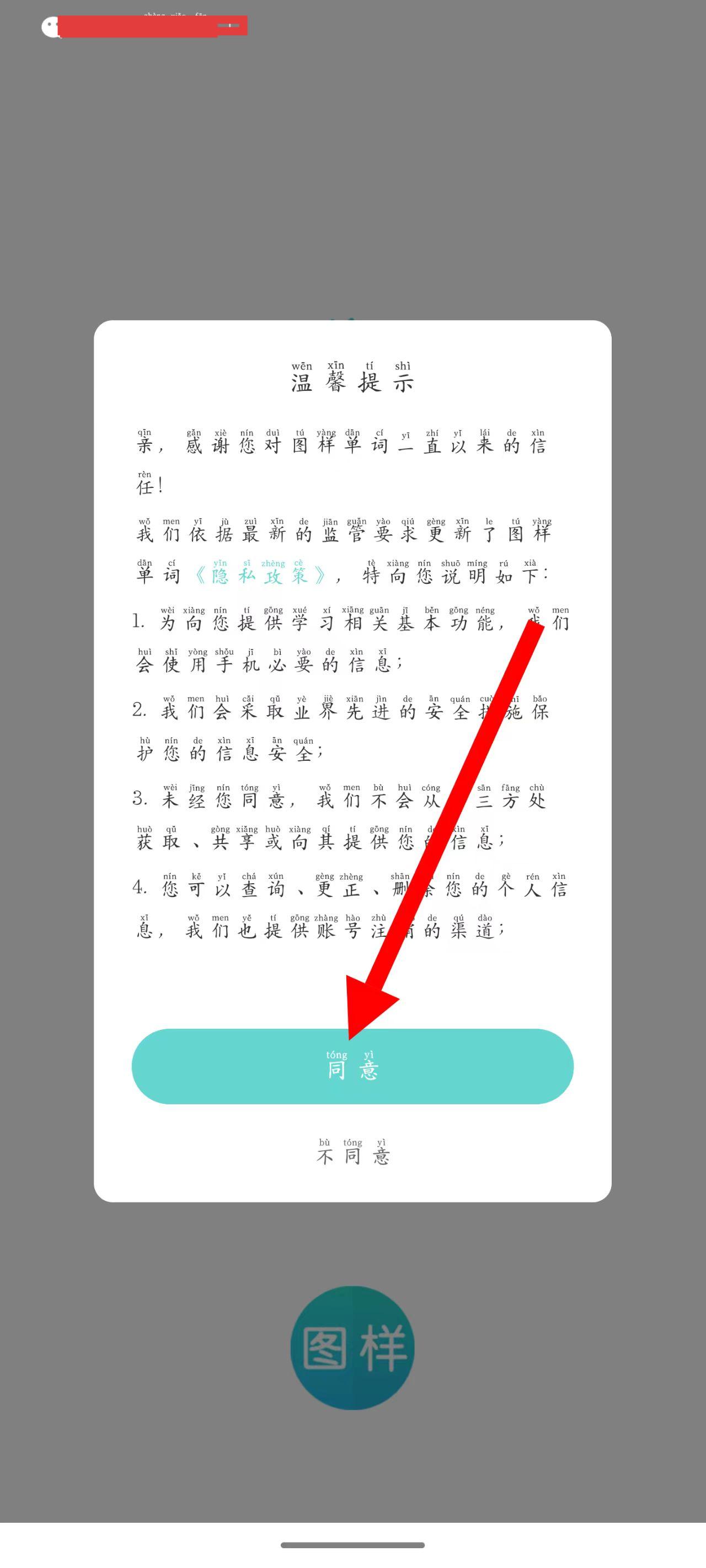1、打开APP,在温馨提示页面,点击同意。