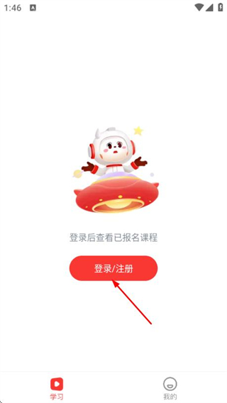 1、在学习页面点击中间的登录注册按钮,进入登录页面。