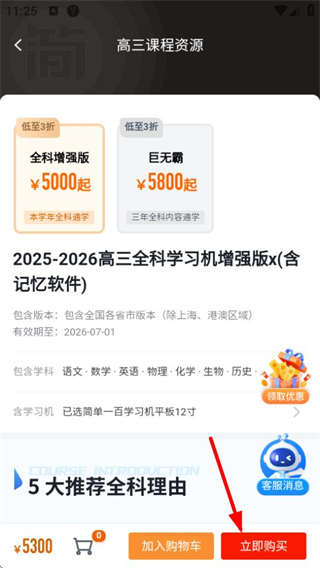 4、在课程详情页面,点击立即购买,即可完成该课程的购买操作。