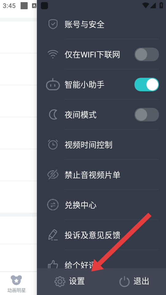 2、在弹出的侧边栏中,再次点击设置,进入详细设置的页面。