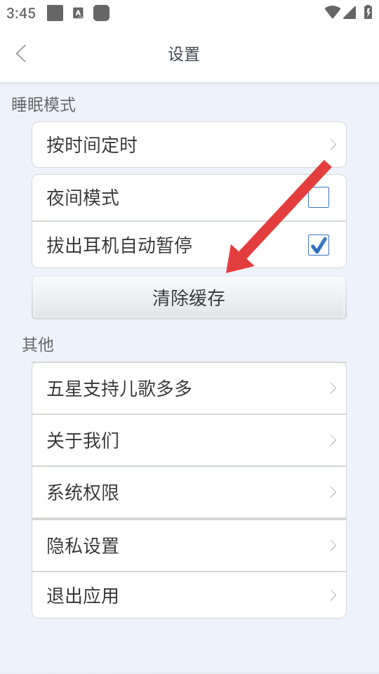 3、在设置页面,找到并点击清除缓存按钮,触发您确定要清除缓存吗的确认弹窗。
