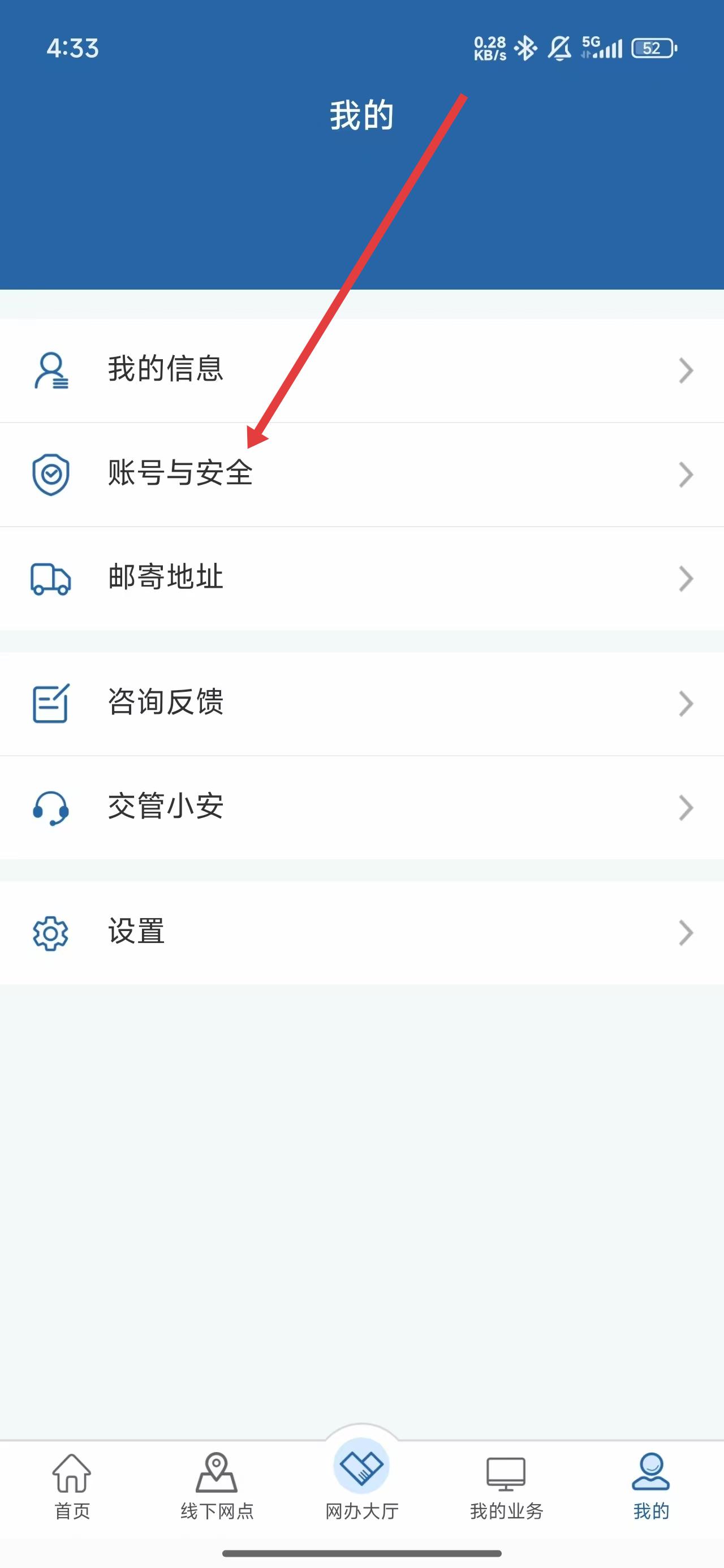 2、跳转到我的页面后,可以点击账号与安全进入查看更多选项。