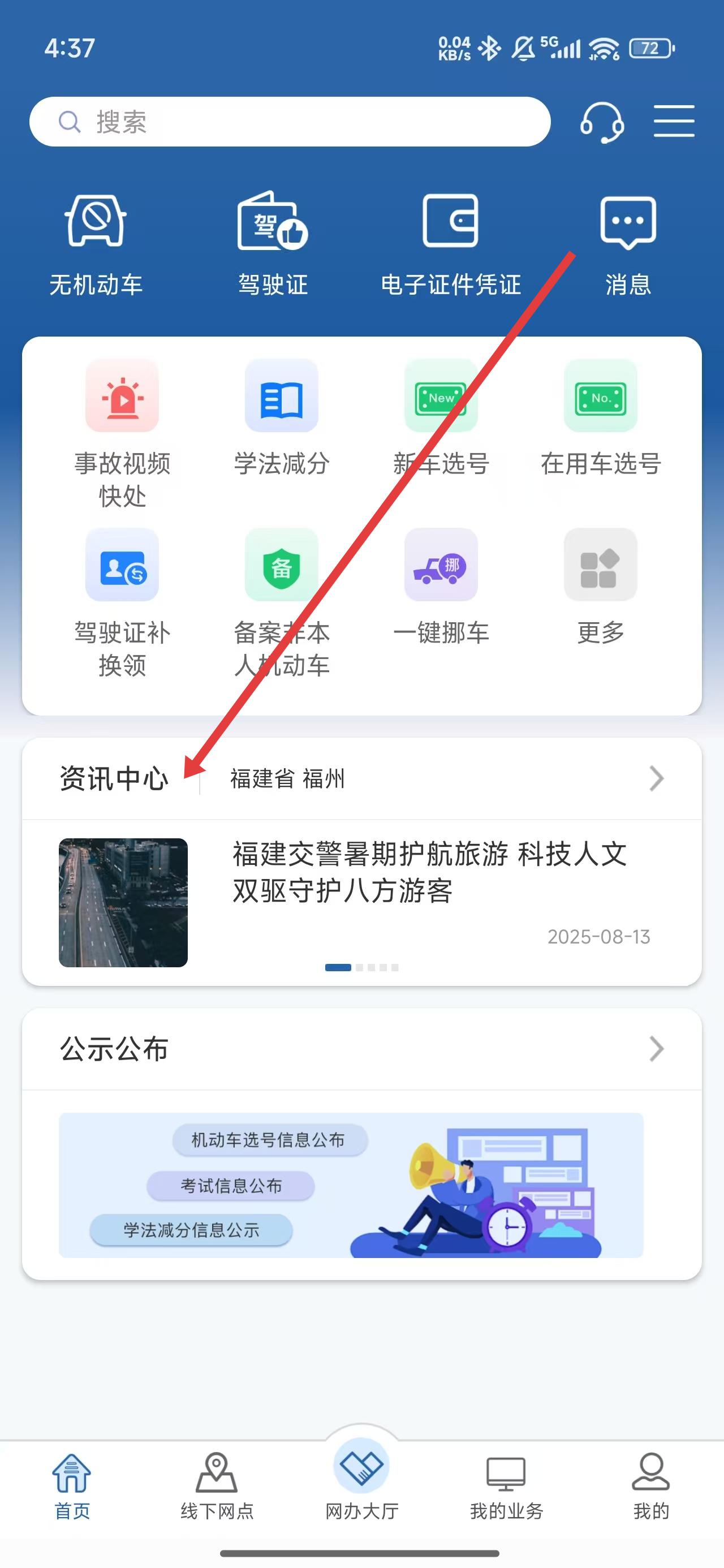 1、在应用首页中,可以点击资讯中心进入查看最新资讯。
