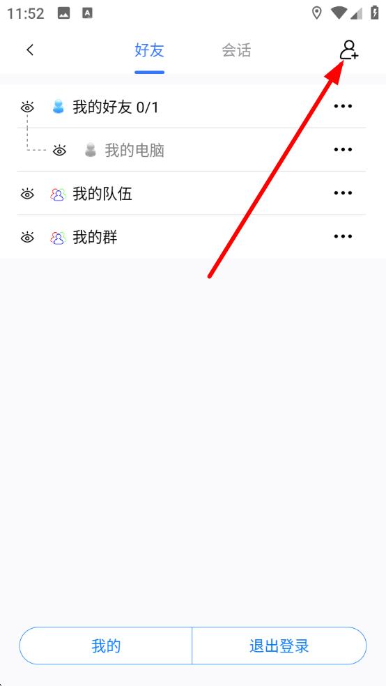 2、在好友界面中,点击右上角人像+按钮,进入查找好友功能页面。
