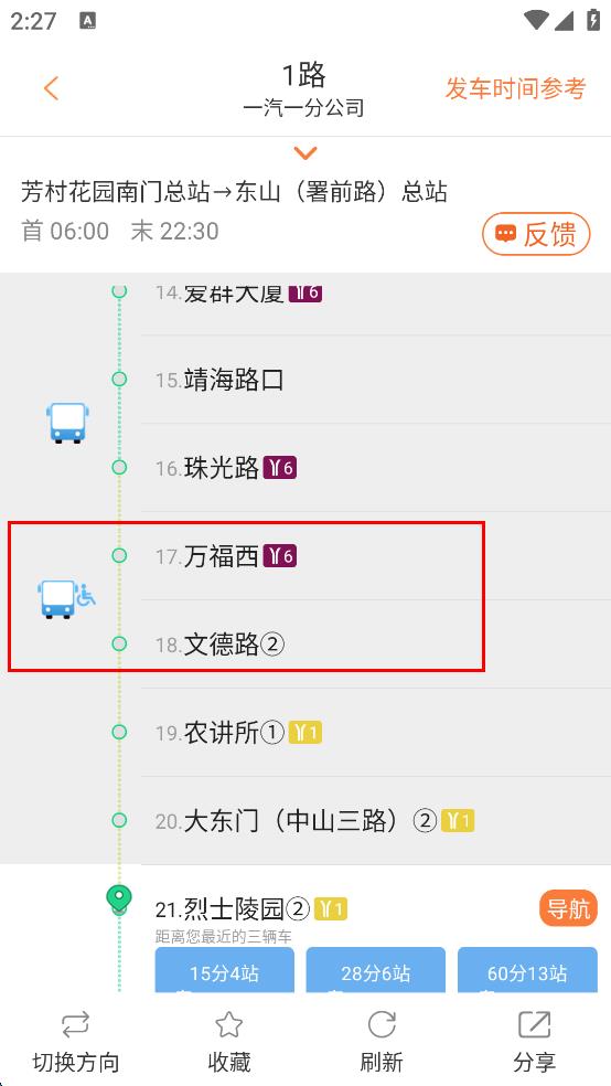 4、进入所选公交线路的详情页面后,即可查看该线路的站点信息,包括各站点名称等内容。