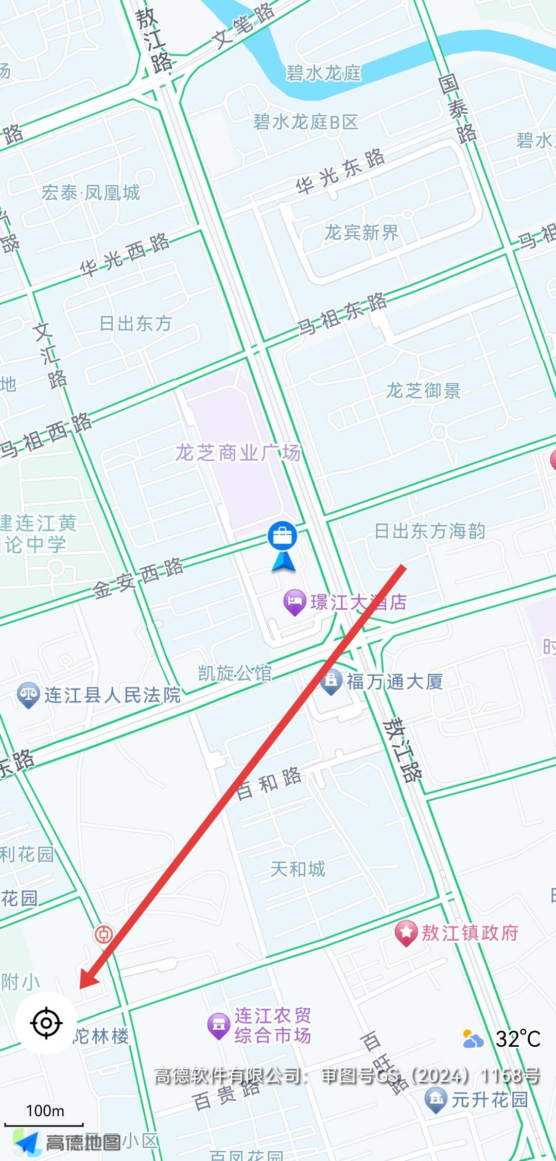 2、点击地图左下角的定位按钮,触发实时定位,设备通过接收北斗卫星发射的信号,结合信号传播时间差计算与卫星的距离,逐步确定自身位置。