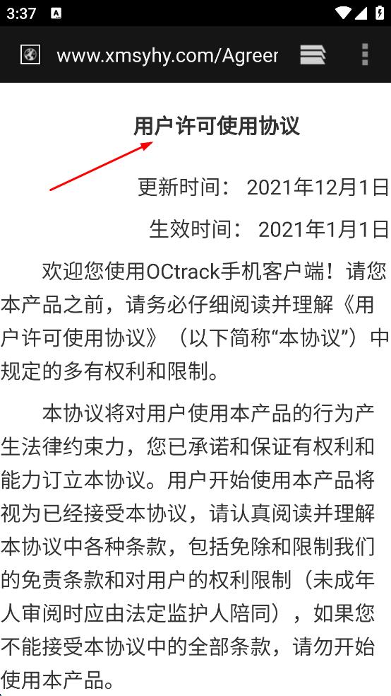 1、打开CTrack应用,在初始页面点击“多设备登录”,进入用户许可使用协议页面,仔细阅读协议内容 。