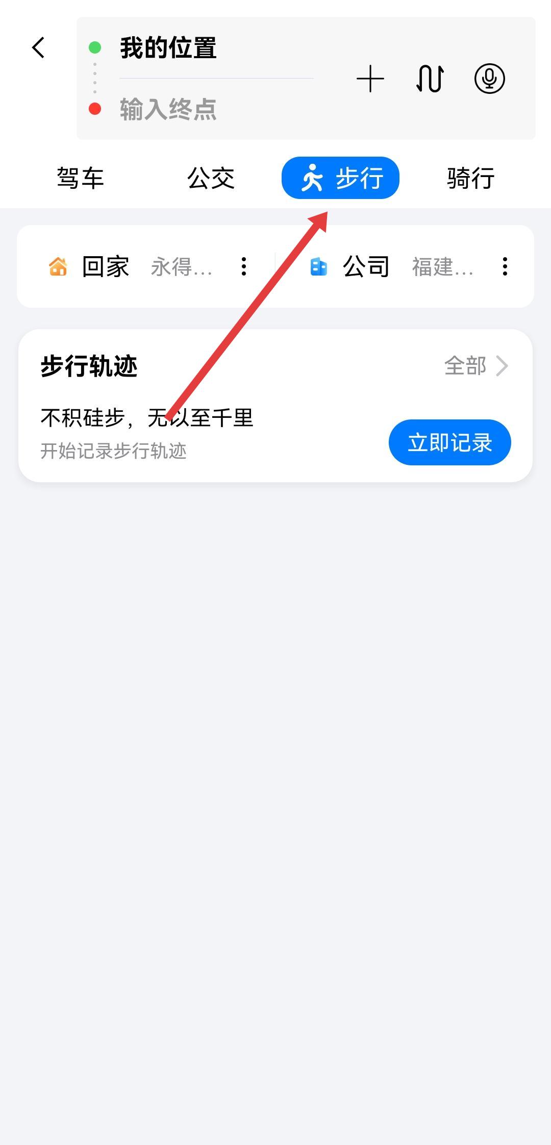3、或者在这个页面切换至步行模式,输入起点和终点,系统自动检索最新路线,输入目的地,生成步行导航路径。