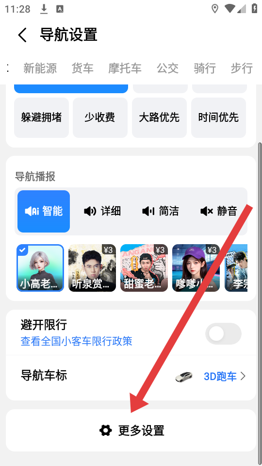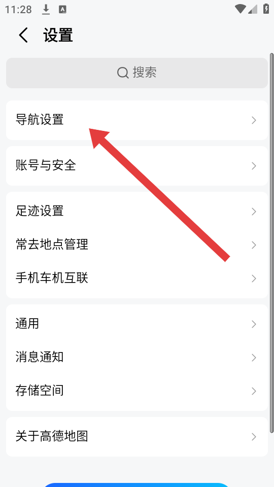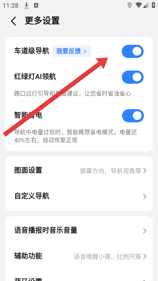 2、进入导航设置页面后,确认高德地图已更新至最新版本,确保设备支持车道级导航功能,为开启该功能做准备。