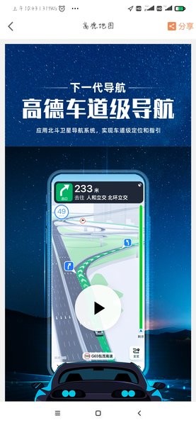 2、进入即可看到高德车道级导航的介绍,用户在这里可以观看车道级导航的宣传视频,接着将屏幕往下拉。