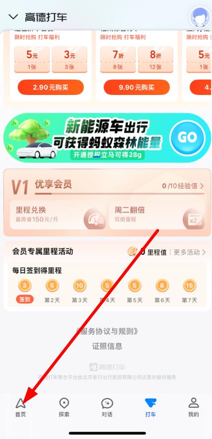1、打开高德地图APP,点击底部导航栏中的首页选项进入首页界面。