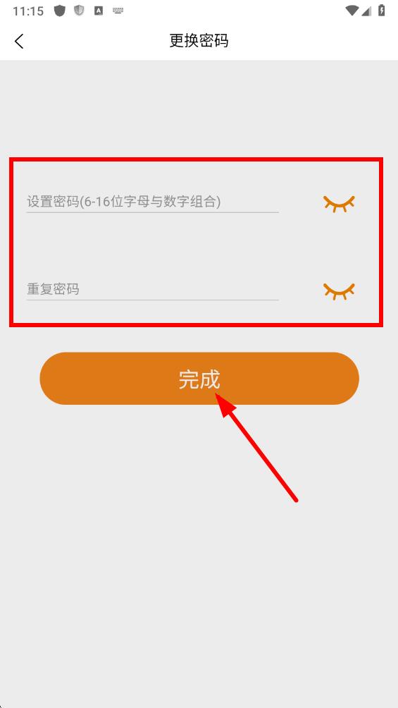 5、验证通过后,在相应的输入框中设置新密码,并再次输入重复密码进行确认,点击完成按钮,即可成功修改密码。