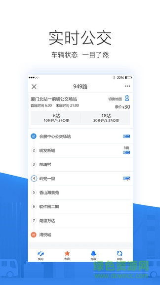 集成公交实时查询、换乘方案、附近站点定位、历史记录、我的收藏、资讯公告、意见反馈、失物招领、企业信息…等一体化实用功能。目前查询数据已覆盖全国,例如:河源、涡阳、自贡、肥西…等。