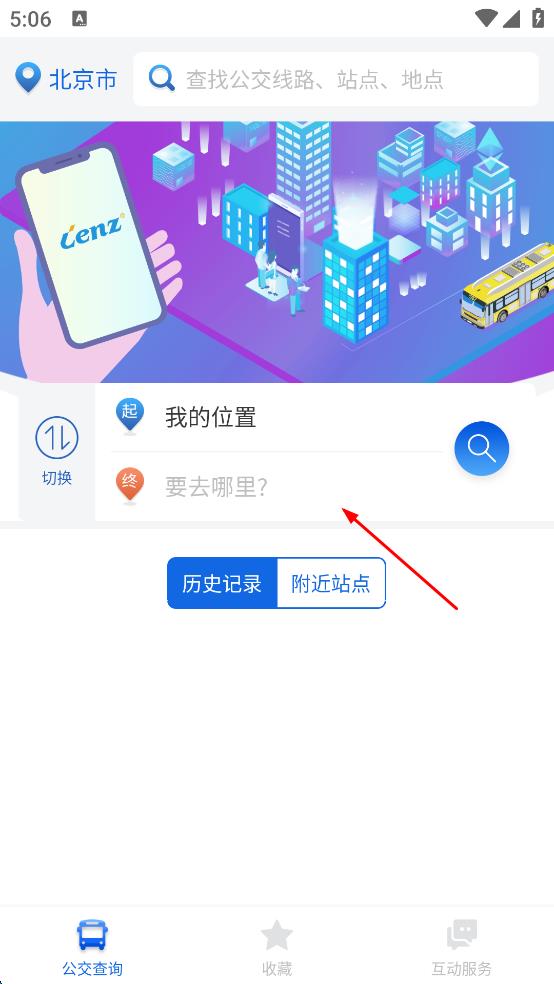 3、在“请输入终点”搜索栏内,输入想要前往的终点信息,即可进行公交查询相关操作。