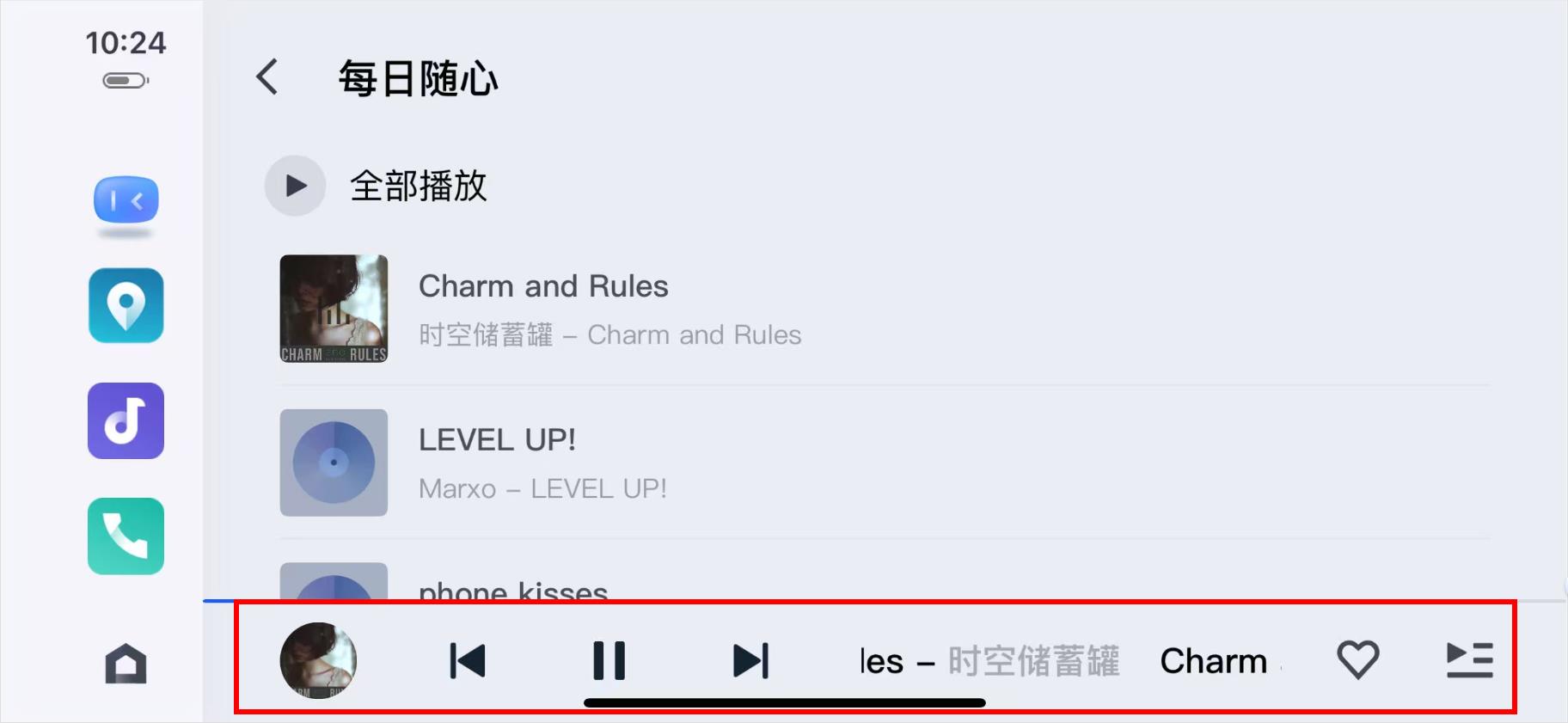 2.第三方App的声音可能不能播放到车内音响,App右下方加了个“EX”的菜单,有3种声音模式,如果发现车内音响无声音,可以一个个试试有没有能正常播放的