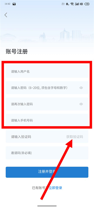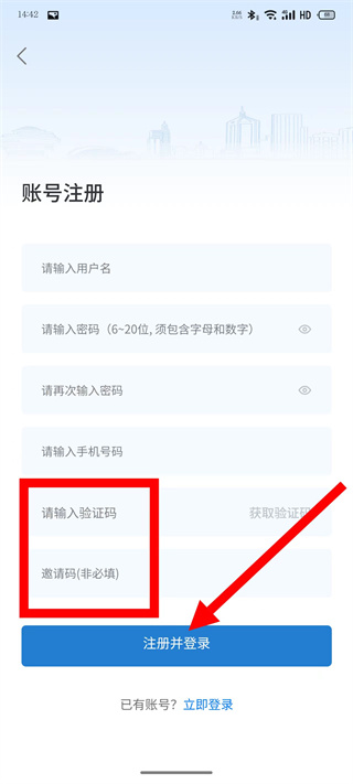 5、输入验证码,点击注册并登录,完成注册操作。
