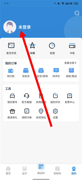 2、在个人页面,点击未登录,进入登录界面。