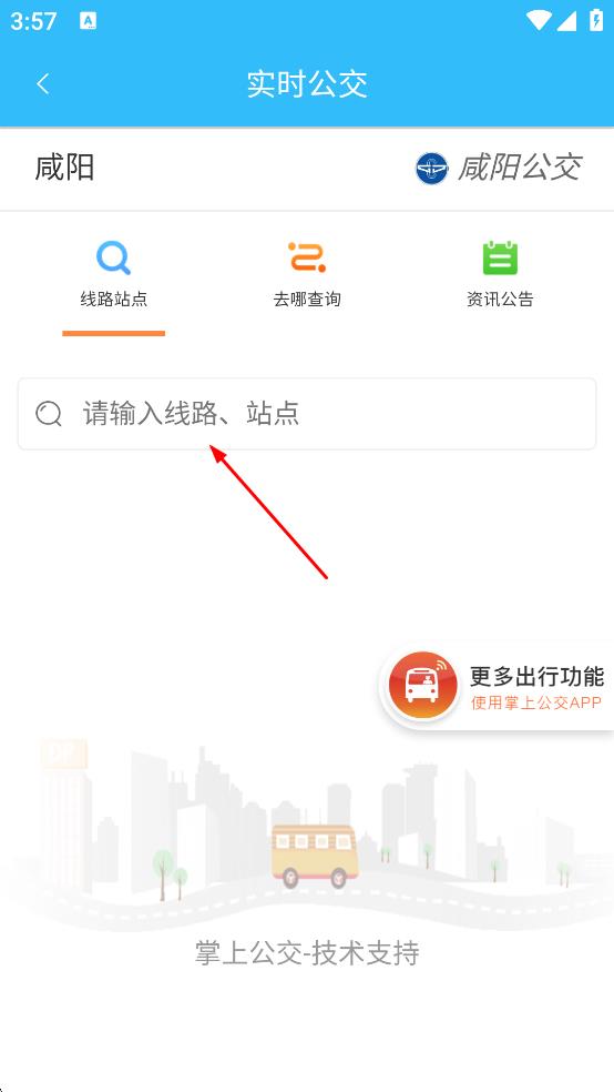 2、在实时公交页面的搜索栏,输入要查询的线路或站点,触发查询流程。