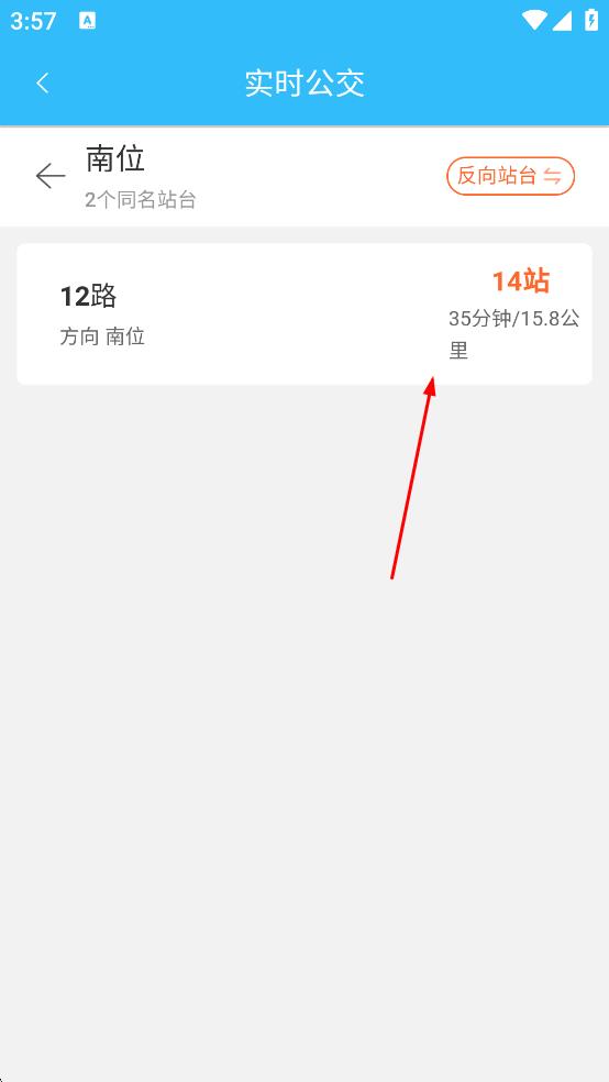 3、查询结果展示后,查看对应公交线路的实时信息,等公交相关信息 。