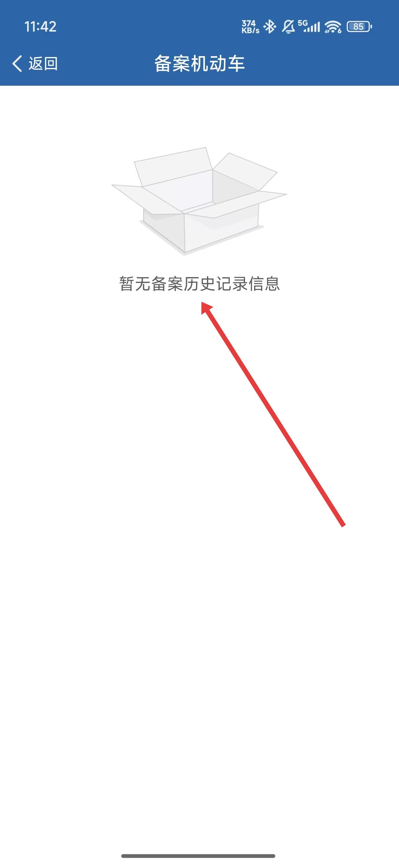 3、在跳转到备案机动车页中,显示当前暂无备案历史记录信息。