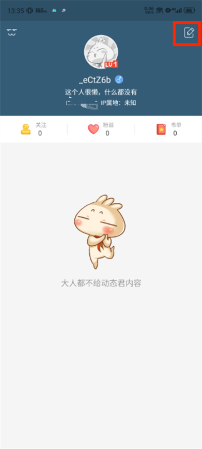 3、点击后进入个人空间界面,然后点击界面右上角的编辑按钮;