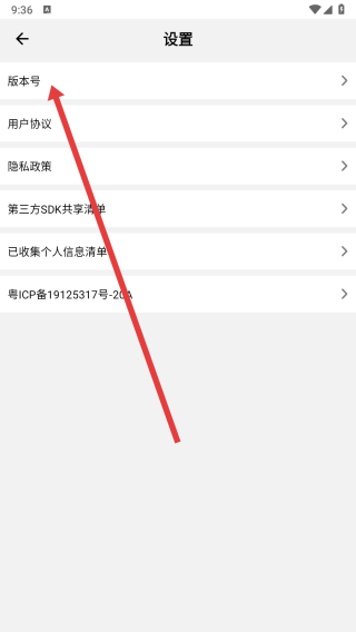 3、在进入到设置页面后,可以点击版本号选项,跳转页面查看当前版本信息。