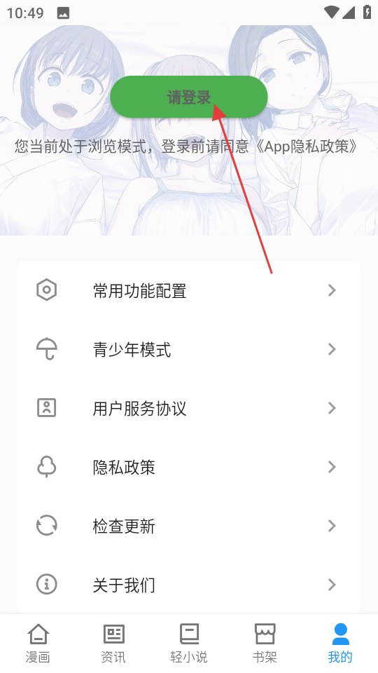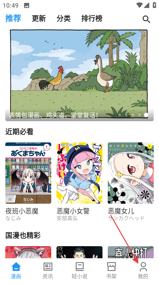 1、在漫画应用首页,点击底部我的,进入个人中心页面。