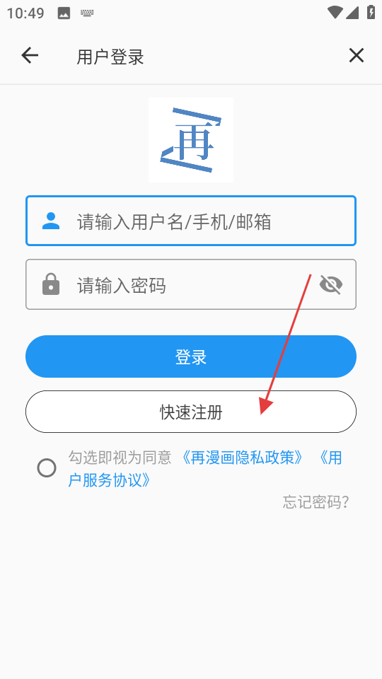 3、在用户登录页面,点击快速注册,进入用户注册页面。