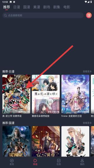 1、进入到软件内,用户可以点击推荐的日漫进行观看,点击后即刻开始,推荐包含了大多数用户喜好的内容。