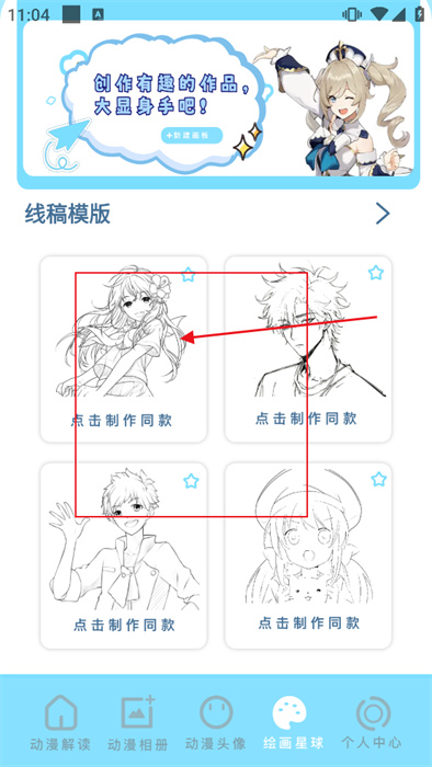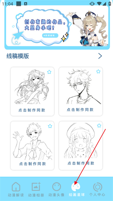 1、将软件从桌面上打开进入,并点击【绘画星球】,这里会切换页面,如下图;