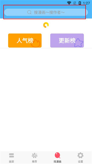 1、打开漫画软件的推荐界面,点击底部的找漫画选项,进入漫画搜索页面。