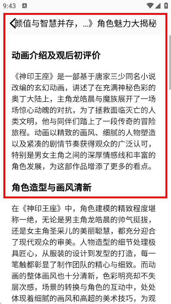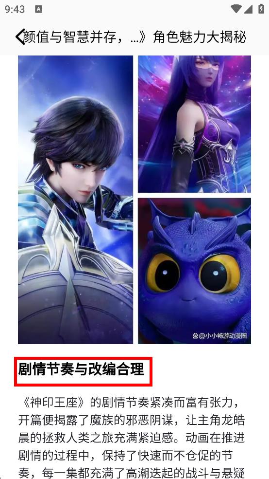 3、进入后,可查看漫画的动画介绍、观后评价等文字内容。