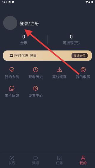 2、用户可点击登录或者注册的按钮,登进去后可免费获得观看完整剧集的资格,也可查看自己的观看历史。