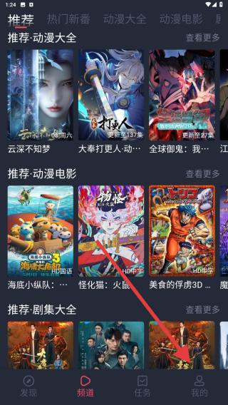 1、进入到该软件内,用户可在推荐的页面进行找寻自己喜欢的动漫剧集,点击后即可开始观赏。