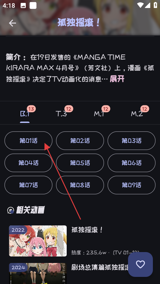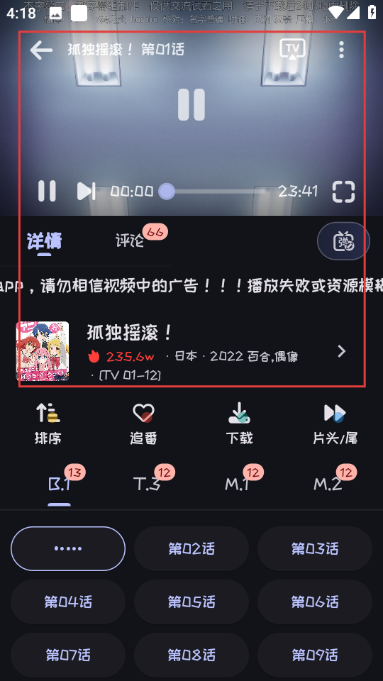 4、在播放页面,即可观看孤独摇滚第1话内容。